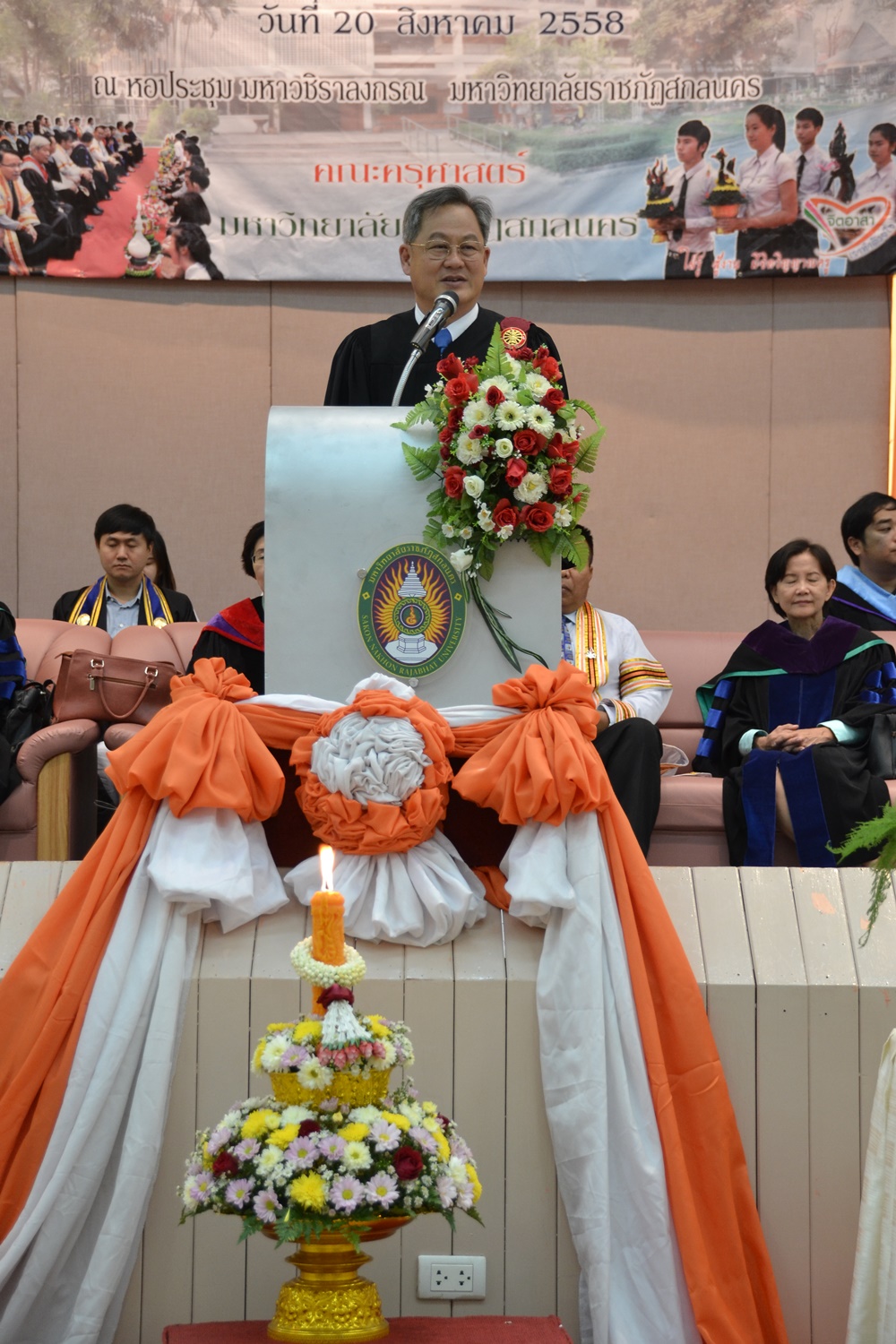 เมื่อวันที่ 20 สิงหาคม 2558 คณะครุศาสตร์จัดพิธีไหว้ครู “ครุศาสตร์วันทา บูชาพระคุณครู” ณ หอประชุมมหาวชิราลงกรณ มหาวิทยาลัยราชภัฏสกลนคร ในการนี้นักศึกษาสาขาวิชาสังคมศึกษาชั้นปีที่ 1-4 ได้เข้าร่วมกิจกรรมดังกล่าว เพื่อแสดงความเคารพต่อคณาจารย์ผู้สอนสั่ง โดยมี รศ.ดร.ชนินทร์ วะสีนนท์เป็นประธานเปิดงาน ตลอดจนมีผู้บริหารและคณาจารย์คณะครุศาสตร์เข้าร่วมในพิธีนี้ด้วย ภายในงานมีการประกวดพานไหว้ครู และมอบเกียรติบัตรแก่ผู้ที่ทำชื่อเสียงให้คณะครุศาสตร์ ซึ่งนักศึกษาสาขาวิชาสังคมศึกษาได้รับมอบเกียรติบัตรจำนวน 3 คน ได้แก่ นายวิษณุ เสนจันตะ นางสาวรันนิกา พันดวง และนางสาวสุภาพร รัตนะ