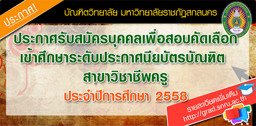 ประกาศรับสมัครบุคคลเพื่อสอบคัดเลือกเข้าศึกษาระดับประกาศนียบัตรบัณฑิต สาขาวิชาชีพครู ประจำปีการศึกษา 2558